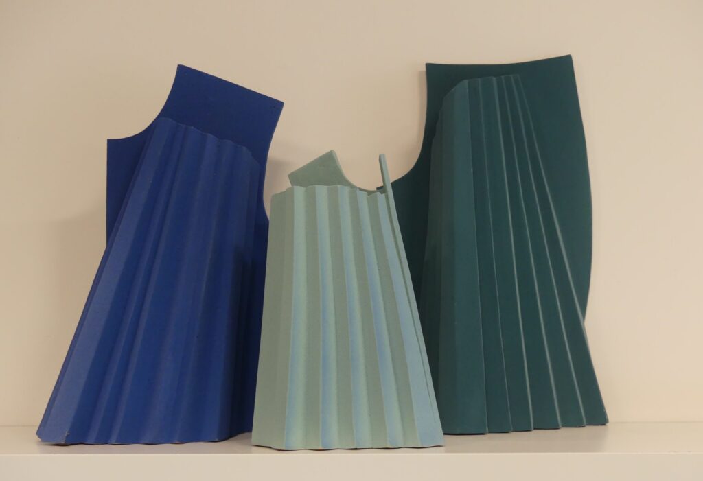 Haar laatste werk is geïnspireerd op origami geometrie. Origami, de kunst van het vouwen van papier, wordt geassocieerd met geometrische vormen. Door dit toe te passen op keramische sculpturen, ontstaat een boeiend spel van reliëf, structuur en materiaal.